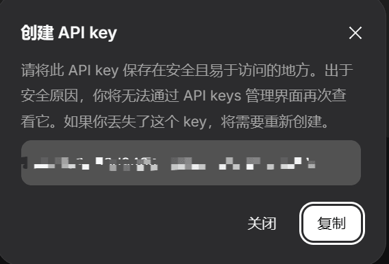 创建后点击复制APIkey